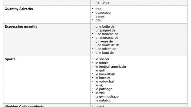 Grade 4 French Check List